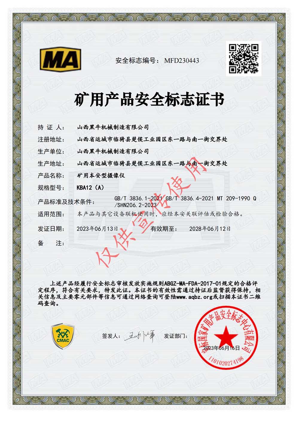 礦用本安型攝像儀KBA12(A)